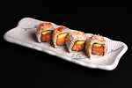A delicate combination of fresh salmon, cream cheese, and asparagus, rolled in orange-hued tobiko for a burst of sunrise-inspired flavors.